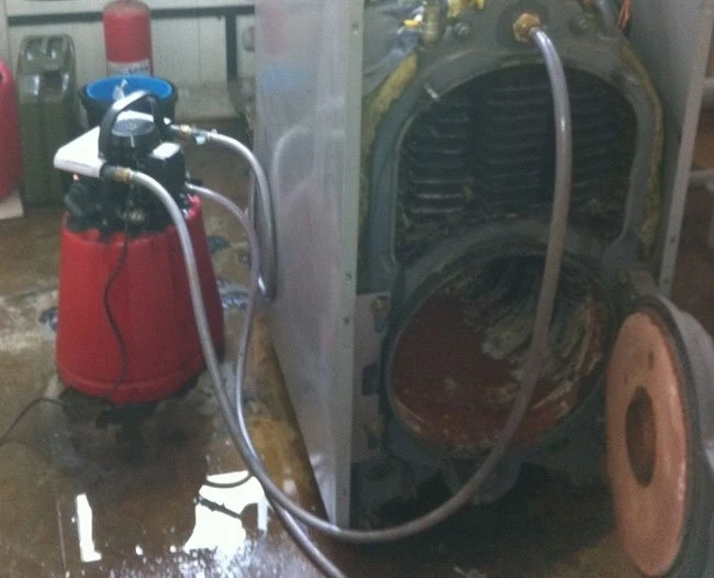 Промывка теплообменника занимает от часа до полудня в зависимости от степени засорения. Технология промывки включает в себя разборку котла и демонтаж теплообменников. Химикаты на основе кислоты заливаются вовнутрь и разъедают накипь на стенках, после чего вымываются наружу напором воды. Процедура длится до тех пор, пока промывная жидкость не начнет выходить свободно и станет чистой. Потом происходит обратная сборка котла со смазкой уплотнений и соединительных трубок силиконом. Стоимость работы составляет 8 тыс. рублей, включая выезд бригады до 20 км от МКАД.